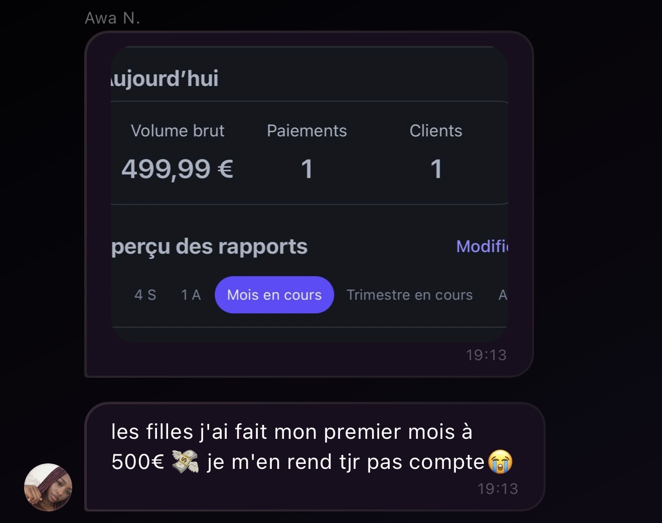Quand j'ai commencé, j'étais serveuse, je comptais sur les pourboires et je vendais mes vêtements sur Vinted pour m'en sortir. Alors t'en fais pas, ça ira pour toi.
